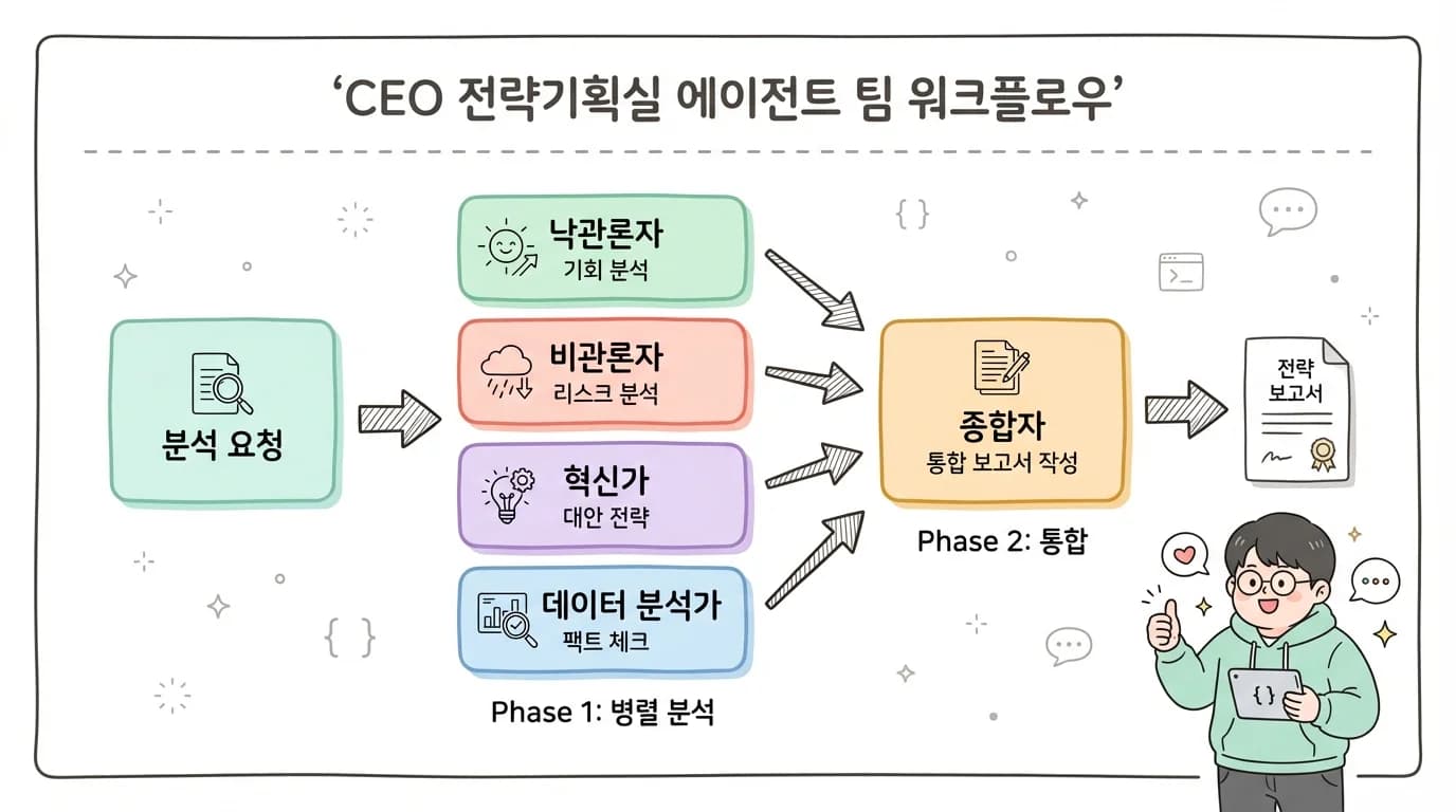 "Claude Code 하나로 10개 AI 팀을 만들었다."라는 글을 산책하면서 봤습니다. 내용이 흥미로왔는데 아 다시 검색을 하려니 찾을 수가 없네요. (링크드인아니면 페이스북인데 글 링크 아시는 분 제보 부탁드려요) 여하튼 이 글의 내용을 모티브로 내용을 정리해 보았습니다. CEO 전략기획실...