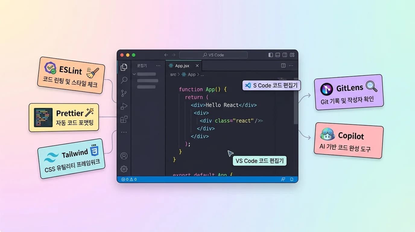 JavaScript와 TypeScript로 React, Next.js 프로젝트를 만든다면 Visual Studio Code는 거의 기본값처럼 쓰이는 도구죠. 기본 상태로도 충분히 쓸 만하지만 어떤 확장을 얹느냐에 따라 작업 흐름이 꽤 달라집니다. 이 글에서는 2025년 후반부터 2026...