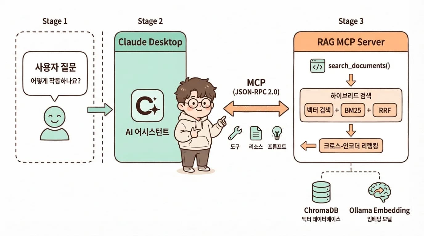 2편에서 데이터 수집 파이프라인을 완성했습니다. 문서를 전처리하고, 청킹하고, Anthropic의 Contextual Retrieval로 문맥을 붙이고, Ollama 임베딩으로 벡터화해서 ChromaDB에 저장하는 과정이었습니다. 한 줄이면 사내 문서가 검색 가능한 상태로 인덱싱됩니다. 그런데 데이터를 준비한 것...