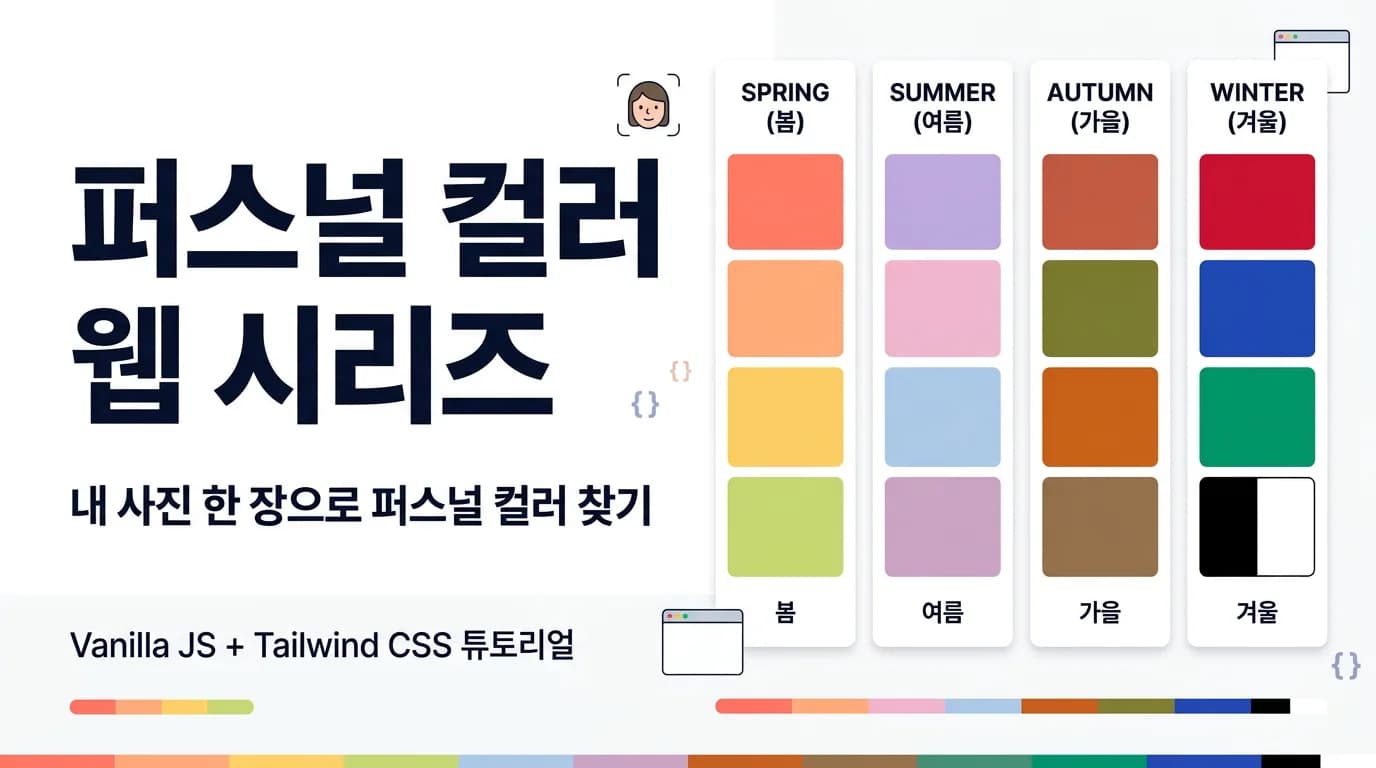 지금 결과 화면에 표시되는 것은 평균 피부색의 RGB 값입니다. 이 숫자만으로는 웜톤인지 쿨톤인지, 봄/여름/가을/겨울 중 어디에 속하는지 알 수 없습니다. 4편에서는 이 RGB 값을 HSL로 변환하고, 색조(Hue)와 채도(Saturation), 명도(Lightness)를 분석해서 퍼스널 컬러를 판별합니다. 1편에서 만들어둔 rgbToHsl 함수가 드디어 진짜 역할을 하게 됩니다. 완성된 사이트는 Vercel에 무료로 배포하는 것까지 해볼 예정입니다.